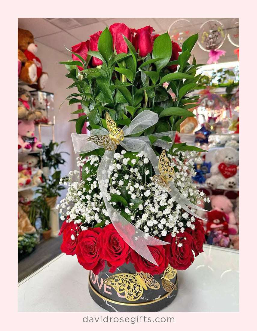 Show all the love and appreciation with an elegant arrangement made in roses denominated topiary arrangement.