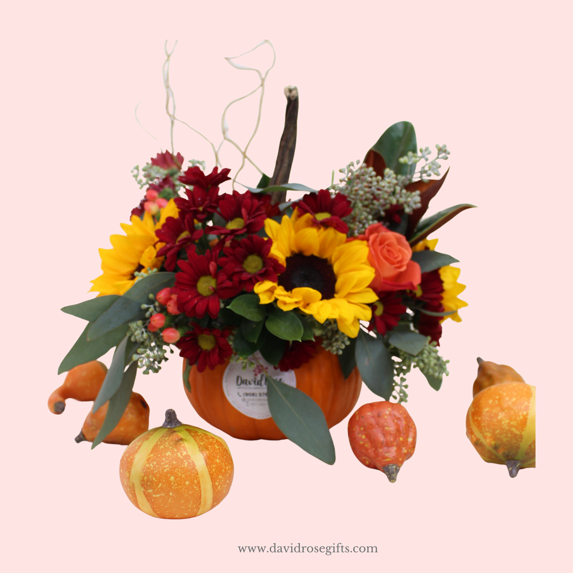Fall into your home with this warm and cozy, Hello Pumpkin arrangement.