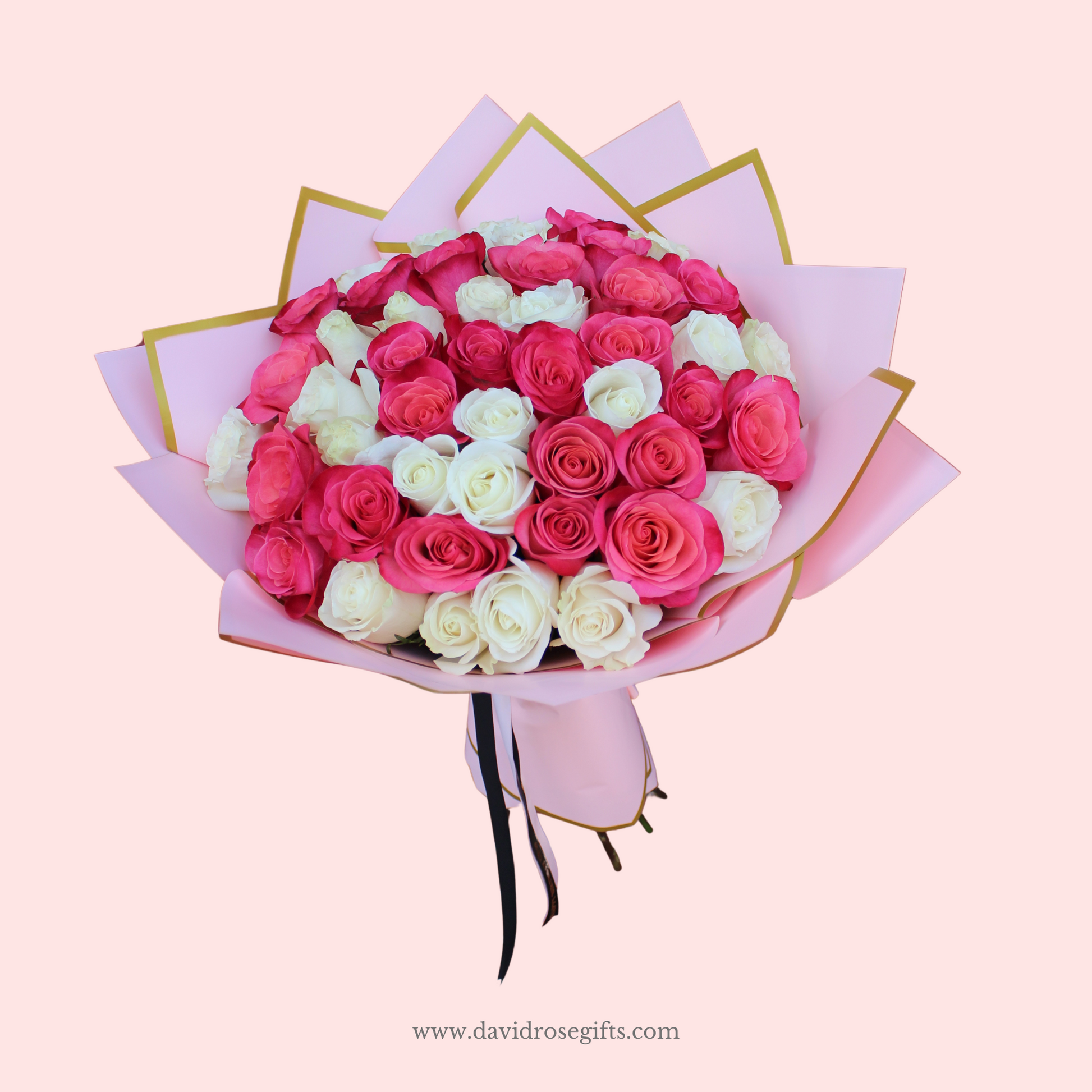 Our Ramo Buchon Sweet Pink is available from 25 roses and up. Select your favorite size.