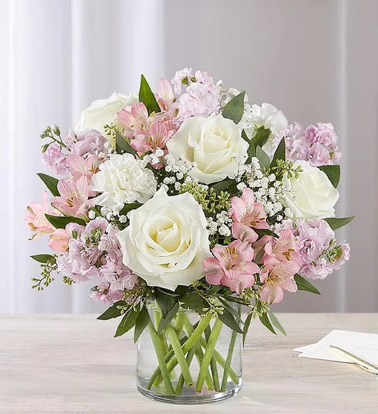 Shades of blush pink and creamy white is a touching expression of sympathy for someone you care about.
