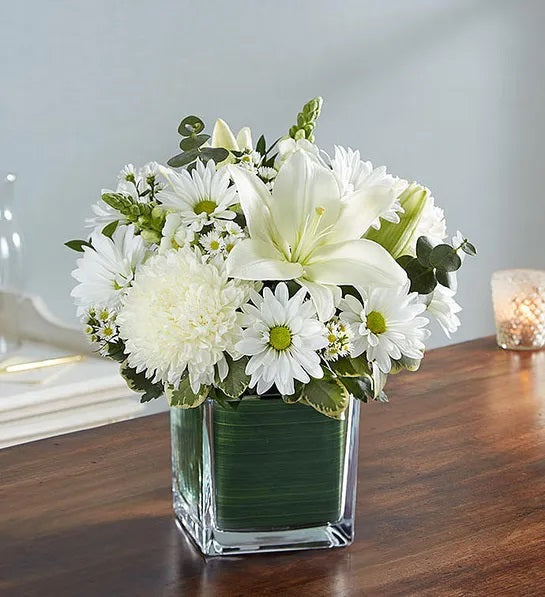 This beauty is an expression of pure white blooms mixes in this arrangement.